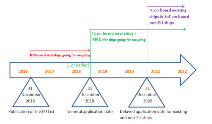 In the following links you can find the most important Regulations related to the inventory of Hazardous Materials (IHM), together with the accompanying Guidelines for the implementation of them, as well as a timeline with all the critical dates.